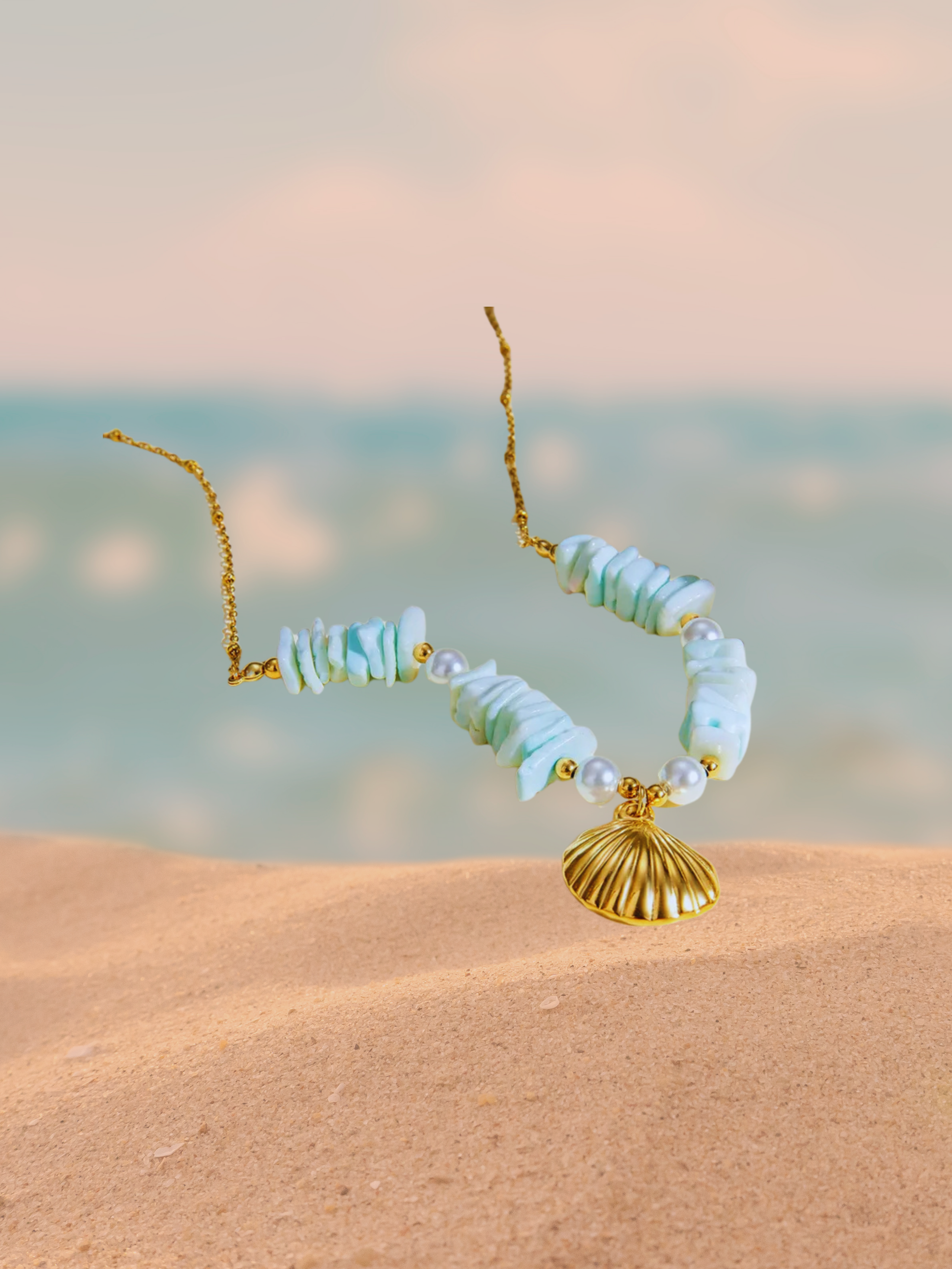 Con detalles de concha marina, waterproof y moderno. Ideal para resaltar tu estilo playero.
