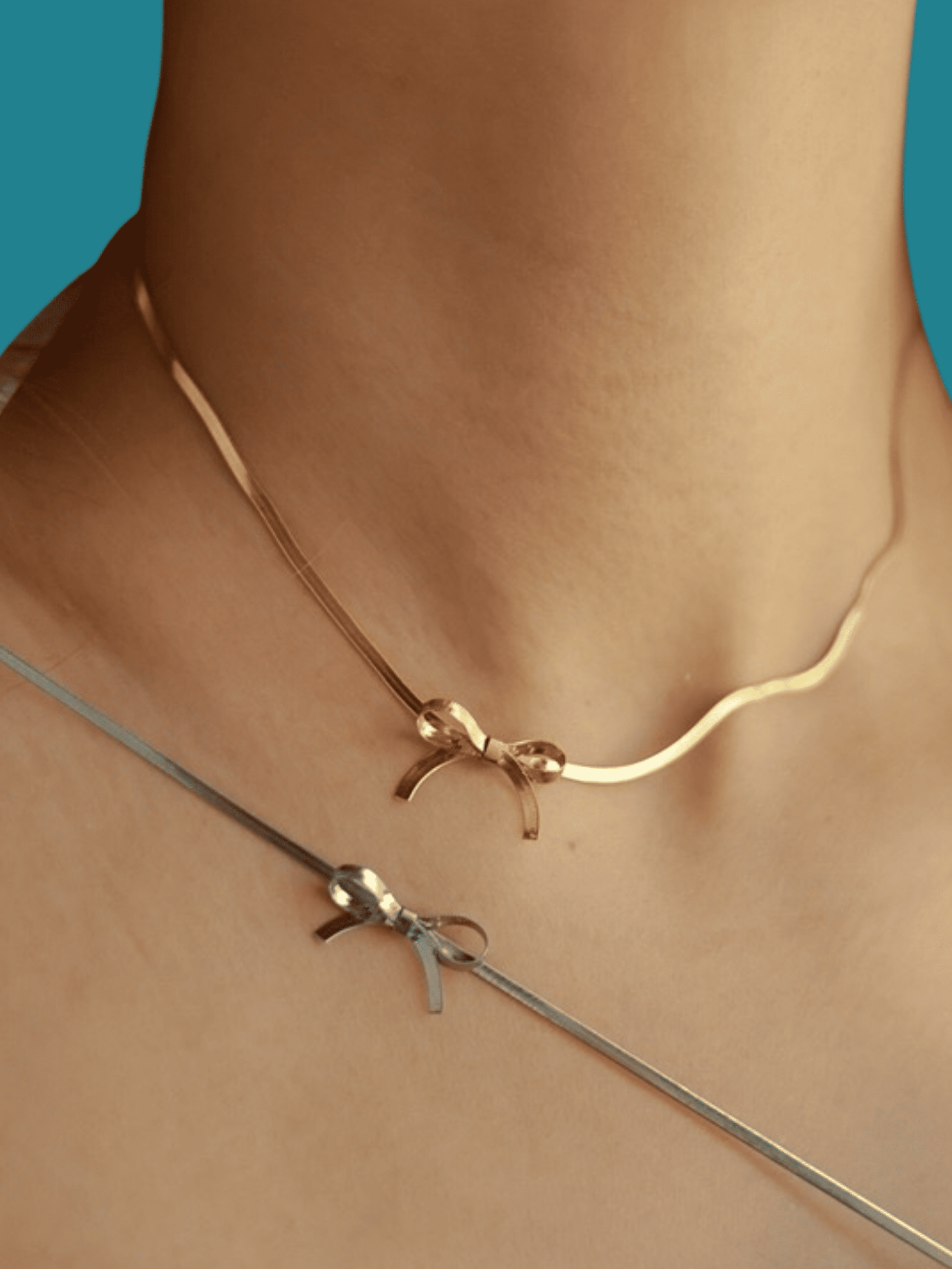 Femenina y moderna 🎀. La Gargantilla Moño combina delicadeza y diseño contemporáneo para destacar el cuello con sutil elegancia.